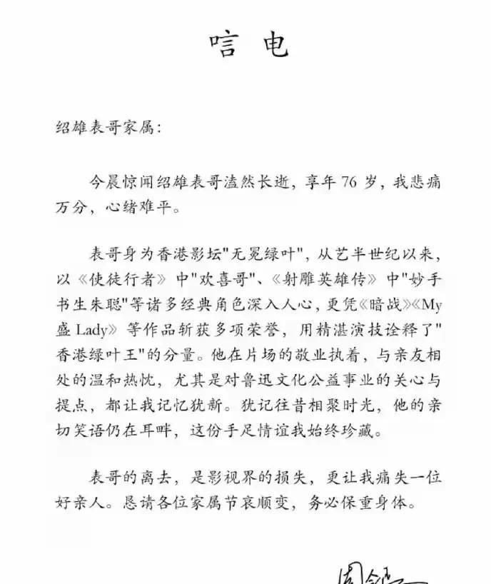 他们缅怀的不只是一个名叫许绍雄的演员,更是他身上那种坚守:不逐虚名,不忘来路,以平凡方式传递厚重情感。